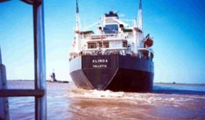 The 28.310 dwt Bulk Carrier "ALINDA", while on laden voyage from San Martin, Argentina to Matarani, Peru, with a cargo of 26336 m/t wheat, ran aground at position 375 km of rever Panama close to Villa Constitution Argentina.