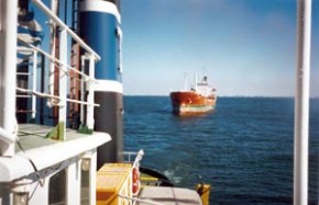 The "NIKOLAY CHIKER" was then engaged to secure the huge carrier for the Mediterranean leg of the towage, this contract being extended in October 2001 to cover the entire voyage to China via the Straits of Gibraltar, the Cape of Good Hope and the Malacca Straits, calling for bunkers and supplies at Piraeus, Las Palmas, Maputo and Singapore en route. Transferred to Ukraine on break-up of the Soviet Union, the stripped-down carrier had been purchased in 1998 by a Hong Kong-based company which proposed to convert it into a floating hotel and casino. A Dutch tug was hired mid-2000 to take the Varyag under tow, but Turkey initially refused permission for the Bosporus transit, and the hull spent 16 months circling the Black Sea before Ankara relented following high-level intervention from the Chinese Government. The long haul through the Med and around Africa was preferred because of risks envisaged in transiting the Suez Canal.