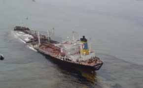 The vessel reportedly began leaking its cargo of 67,500 tonnes of oil as soon as she stranded . It is estimated that up to 20,000 tonnes of crude had been lost before TSAVLIRIS arrived on the scene-mobilising its tug the "SB-408" as well as chartering an additional tug and three lightering tankers. The TSAVLIRIS team worked closely throughout with the owners, the P& I Club and with the local authorities who approved each phase of the cargo discharging, tank inerting and overall polluntants removal, and who were highly complimentary on the salvors' skills. But on demobilisation, the salvage team and its assets were prevented from leaving Pakistan as the result of the highly charged political atmosphere and blame game which caught up almost everybody associated with the casaulty and the clean-up operation.