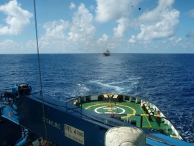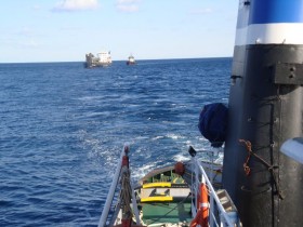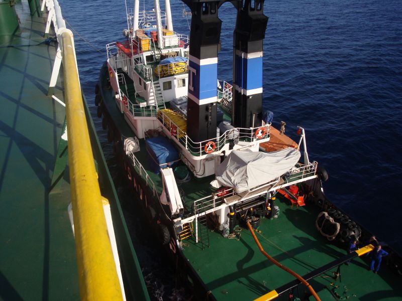 From the 2nd until the 6th March, the convoy encountered gale force winds, very high seas and heavy swells, resulting in heavy rolling and pitching of the tug and tow. On the morning of 8th March, the steel wire pennant parted, and attempts to reconnect commenced immediately. However, due to prevailing long swells, attempts were aborted. On the 9th March, swell eased and tow connection was re-established.