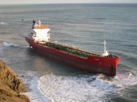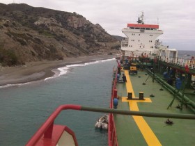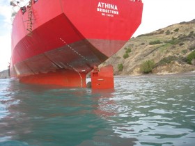 On Friday 22nd January 2010, we dispatched salvage tug "MEGAS ALEXANDROS" from her Piraeus salvage station, to the assistance of M/T "ATHINA" (GRT 7,613, DWT 12,733) in ballast, which had stranded approximately 2.5 n.miles east of Kali Limenes, southern Crete. The vessel had dragged her anchors in sudden bad weather and grounded approximately 20 meters from the high rising rocky shoreline. Initially there was an imminent danger of pollution, however, this subsided, following transfer of all the bunkers and pollutants to the sub-contracted oil recovery anti-pollution vessel "AEGIS". A diver's inspection revealed that rocks had penetrated the ship's bottom. It was also observed that there were small pinnacle shaped rocks all along the port and starboard side of the vessel.