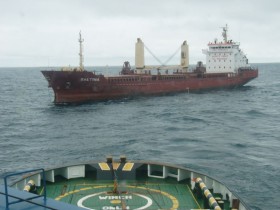 On the 22nd February 2010, we dispatched our salvage tug "TSAVLIRIS HELLAS" from her Ponta Delgada (Azores Islands) salvage station, to the assistance of the pallet carrier/side loader cargo vessel M/V "MARGIT GORTHON" (GT 12,750, DWT 14,240) laden with about 10,000 metric tonnes of wood pulp / brown "KRAFT", immobilized about 900 nautical miles North West of Azores, due to ingress of water in engine room, resulting in black out.