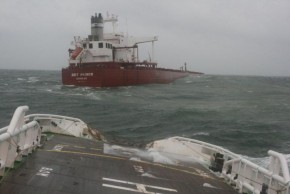 Due to the weather, the "BET PRINCE" dragged her anchor, so her second anchor was dropped, but in spite of this, dragging continued – there was a risk of her grounding as she was heading towards the rocky shoreline. "DONG HAI JIU 111" was instructed to attempt an emergency tow line connection; however this was too dangerous, therefore she stayed near the casualty to monitor the situation continuously.