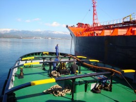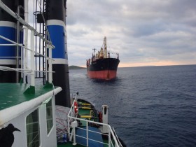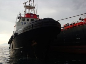 On the 18th February, 2012, we dispatched our station keeping salvage tug "MEGAS ALEXANDROS" from Piraeus for the towage of chemical tanker "GERAKI"(19,081 GT, 35,652 DWT), from Psachna, Evoia, to Piraeus. S/T "MEGAS ALEXANDROS" arrived on the 19th February and went alongside "GERAKI" to connect up and await towing permission to be granted.
