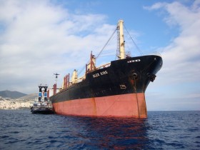 On the 9th February, 2012, we dispatched our station keeping salvage tug "MEGAS ALEXANDROS" from Piraeus to the assistance of Bulk Carrier "ALEX KING", following engine failure at position Lat: 37-43.00 N Long: 028-28.00 E, about 5 nautical miles Northeast of Kea Island. On same day S/T "MEGAS ALEXANDROS" arrived at the scene of the casualty and connected the tow line.