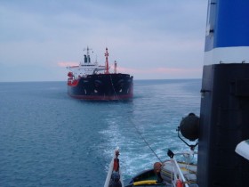 Whilst works continued on the casualty the two salvage tugs also protected the vessel from local traffic as the "BET PRINCE's" condition/location posed/ created a risk of collision with other vessels. The "BET PRINCE's" anchors and anchor chains had become entangled due to the severe weather and a floating crane was brought in to untangle them under the instruction of our salvage master. The casualty was towed from a depth line of 20 metres to deeper water to avoid any further damage. Provisions and marine gas oil were supplied to the casualty, as well as a portable air compressor and a diesel driven generator to provide electricity.