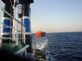 On Saturday 22nd September, salvage tug "MEGAS ALEXANDROS" arrived alongside "DELOS RANGER" and connected up. On same day convoy departed Suez anchorage and proceeded to Aqaba. The convoy encountered bad weather and strong currents during the towage. Convoy safely arrived on Wednesday 26th September 2012.