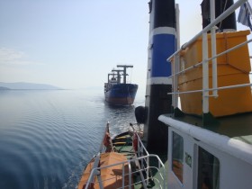 Adverse weather conditions (strong northerly winds) prevailed throughout and it was decided to tow both vessels, while locked into each other, East of Kea Island for shelter. Both vessels, "as a unit", were towed by salvage tugs "MEGAS ALEXANDROS" and "ALEXANDER 5" with the other tugs escorting.