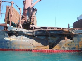 On Friday 5th July a full vessels inspections and diving surveys were undertaken to assess the damages and devise salvage plans. Detailed trim, stability and strength calculations were undertaken to verify buoyancy. Drafts around the vessels were taken, also soundings in all ballast tanks and cargo holds, etc.