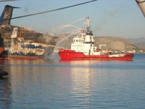 The fire was completely extinguished on Saturday 7th December. Tug "ALEXANDER 3" was released on Monday 9th December and anti-pollution vessels "AEGIS" and tug "EVRIPOS III" provided standby services.