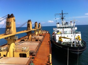 On Sunday 5th May 2013, we dispatched our salvage tug "TSAVLIRIS UNITY", from her Galle (Sri Lanka) salvage station, to the assistance of geared bulk carrier "RIO GOLD" (23,663 GRT, 39,695 DWT), laden with 35,200 MT of cement clinker, grounded on hard rock off South East Preparis Island, Myanmar.