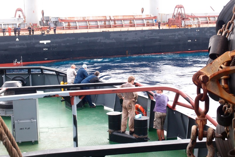 All necessary preparations were made and the pumping out of fuel oil began from the engine's room service tank to the "AEGIS I".