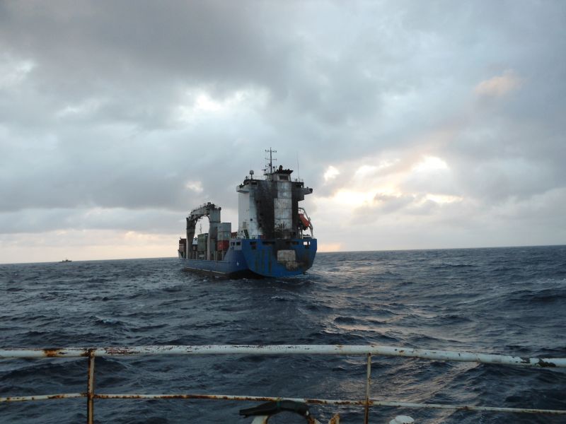 The salvage team continued to improve the sustainability of the electrical systems on board the "EVERTON", the emergency generator was successfully started up providing lights on the starboard side, and navigation lights, etc. were reinstated. Due to the adverse weather salvage tug "TERAS HYDRA" did not arrive until the 4th October 2012, and came alongside to provide fresh water and food supplies. Afterwards "TERAS HYDRA" connected the tow line to the "EVERTON" and the convoy proceeded towards Beira.