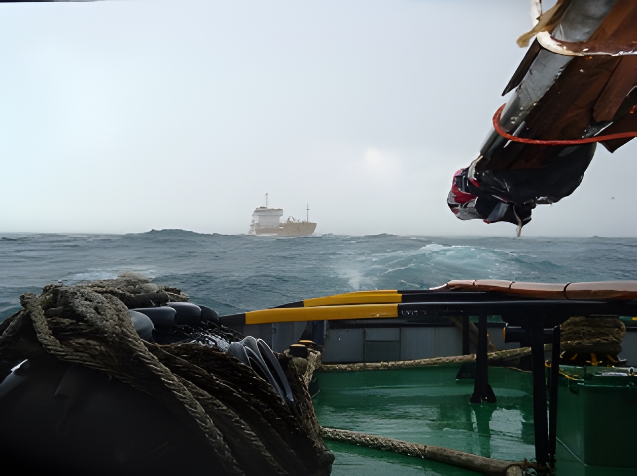 Towage connection effected on Tuesday 2nd April in adverse weather conditions.