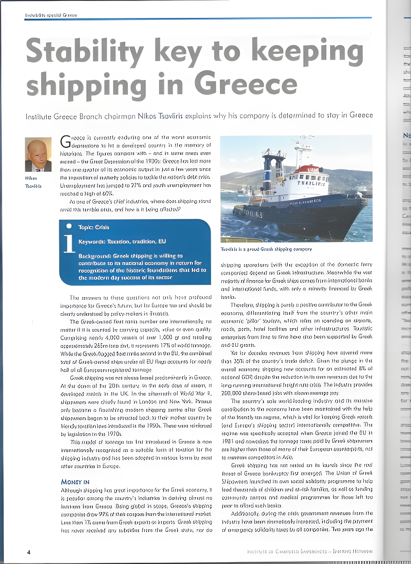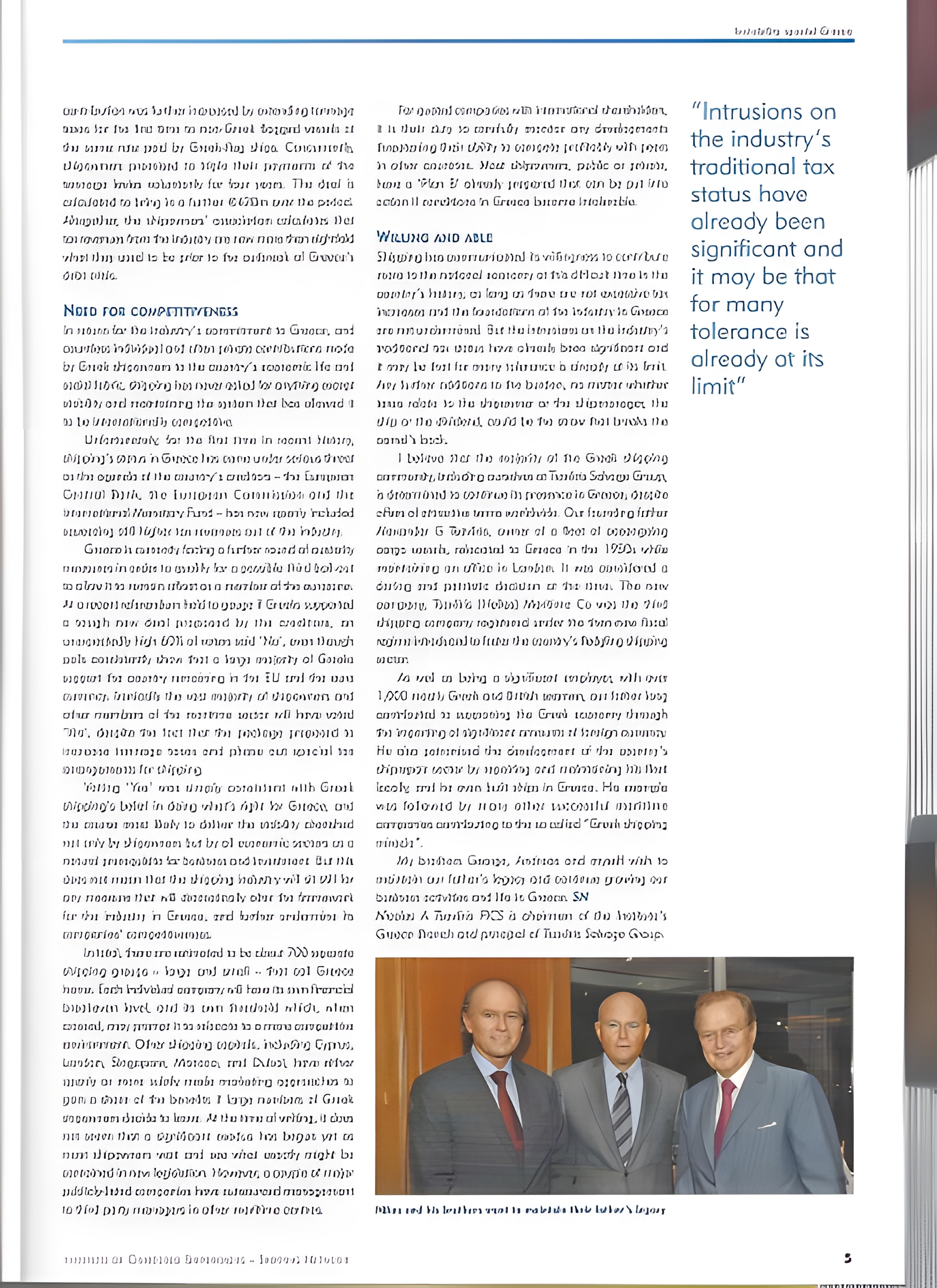 Unfortunately for the first time in recent history, shipping's status in Greece has come under serious threat as the agenda of the country's creditors – the European Central Bank, the European Commission and the International Monetary Fund – has now openly included squeezing still higher tax revenues out of the industry.