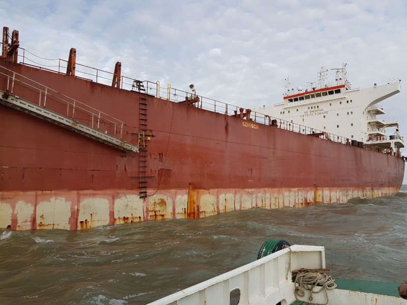 On 24 March, following an underwater inspection, the casualty was successfully refloated by the tugs, escorted to anchorage B area for inspection as directed by the port authorities.