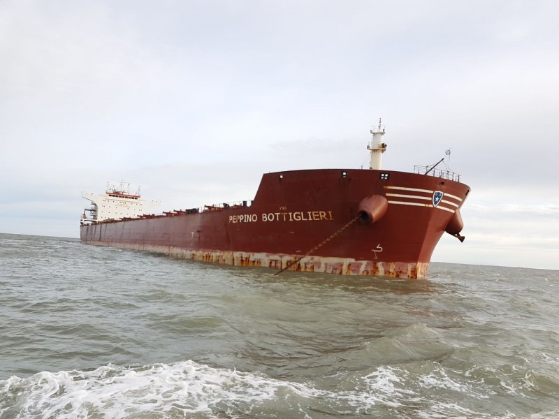 On 23 March 2018 the Panamax Bulk Carrier "PEPPINO BOTTIGLIERI" (GT 51,255 – DWT 93,251) laden with 74,300 tonnes of soya bean meal and maize whilst outbound from Bahia Blanca, Argentina, with destination Cai Mep/ Phu My, Vietnam, grounded about 1,9 miles from San Juan light-house.