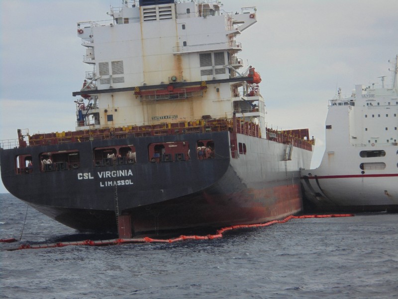 On 7 October 2018, the Container Ship "CSL VIRGINIA" (GRT 54,592 - DWT 66,644), whilst anchored north of Cap Corse, northern Corsica peninsula, in ballast condition, was allided by the Tunisian Ferry "ULYSSE" (GRT 17,907) which was en route from Genoa, Italy to Tunis, Tunisia. The "CSL VIRGINIA" suffered substantial damage (several meters hull breach by way of her starboard side at hold No.3) and the ferry's bow sustained serious damage. Oil pollution from bunkers occurred in the area.