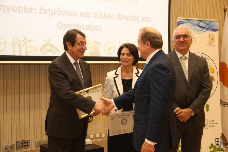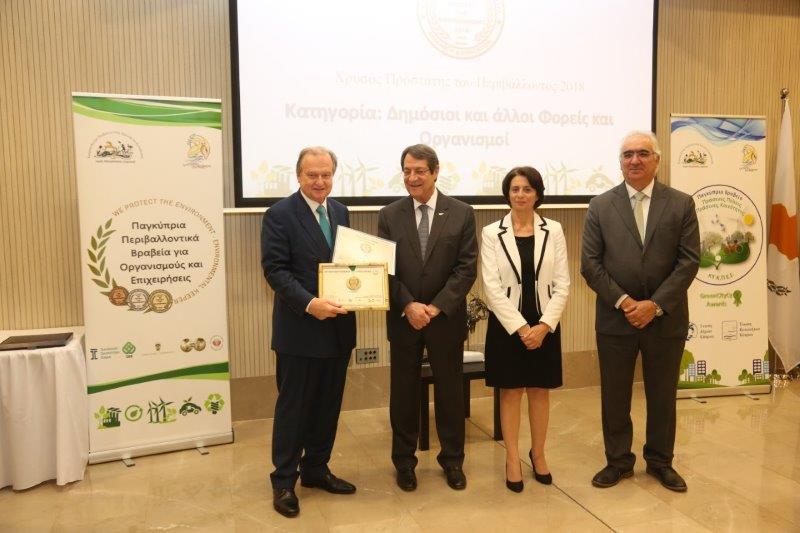 CYMEPA was awarded the Gold Environmental Award 2019 during a Pancyprian ceremony at the Presidential Palace in Lefkosia, Cyprus, on 22 January 2019. Mr George Tsavliris, CYMEPA President, received the "Gold Protector of the Environment" recognition by the Honorable President of the Republic of Cyprus Mr Nicos Anastasiades.