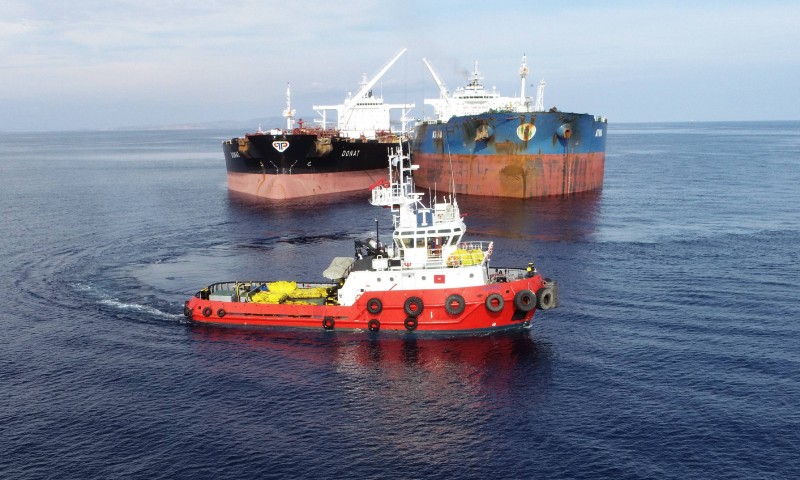 Tsavliris Salvage was engaged to provide assistance and on the same day, the tugs "PANTOKTATOR" (BHP 4,052 - BP 53) and "PLATYTERA" (BHP 3,872 - TBP 51) were dispatched from Piraeus. The tugs arrived to the casualty's position on 12 November and provided escort services towards OPL Limnos Island for a planned STS operation.