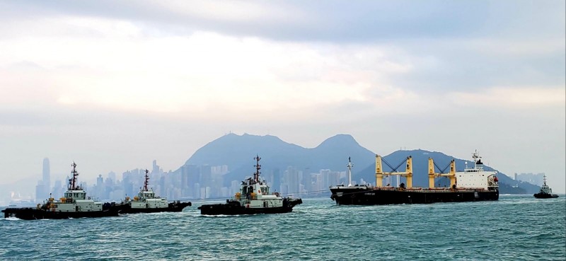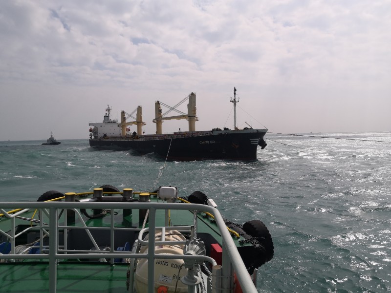 On 12 December 2019, the convoy arrived safely OPL Hong Kong and the tow was delivered to four port tugs arranged by Tsavliris. The tugs "SALVAGE CHAMPION" and "SALVAGE WORKER" were released and demobilised to Kaoshiung.