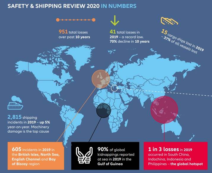 Allianz Safety and Shipping Review identifies loss trends and highlights coronavirus, climate, security and technology-related challenges for the maritime sector.