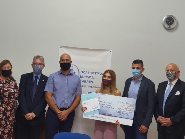 The Tsavliris Cultural Foundation Scholarship was presented to Miss Georgia Fotiou, postgraduate student in Shipping and Finance at the Cyprus University of Technology CUT, during a ceremony in Limassol. Miss Fotiou was unanimously selected as the recipient of the Scholarship for the academic year 2020 – 2021.