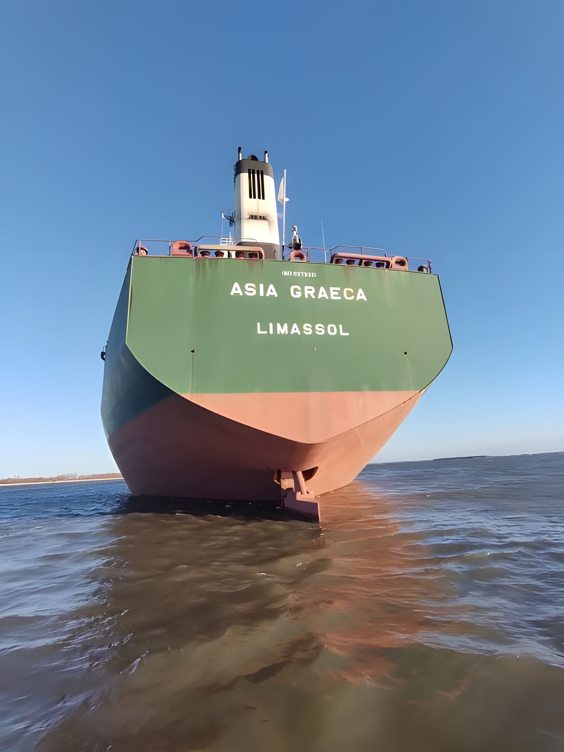 On 19 November 2020, the Bulk Carrier "ASIA GRAECA"(GT 39,041 - DWT 73,902), laden with 39,309 tonnes of soya beans, grounded at KM 453 Parana river, Argentina, during downriver navigation. The vessel was partially obstructing navigation.