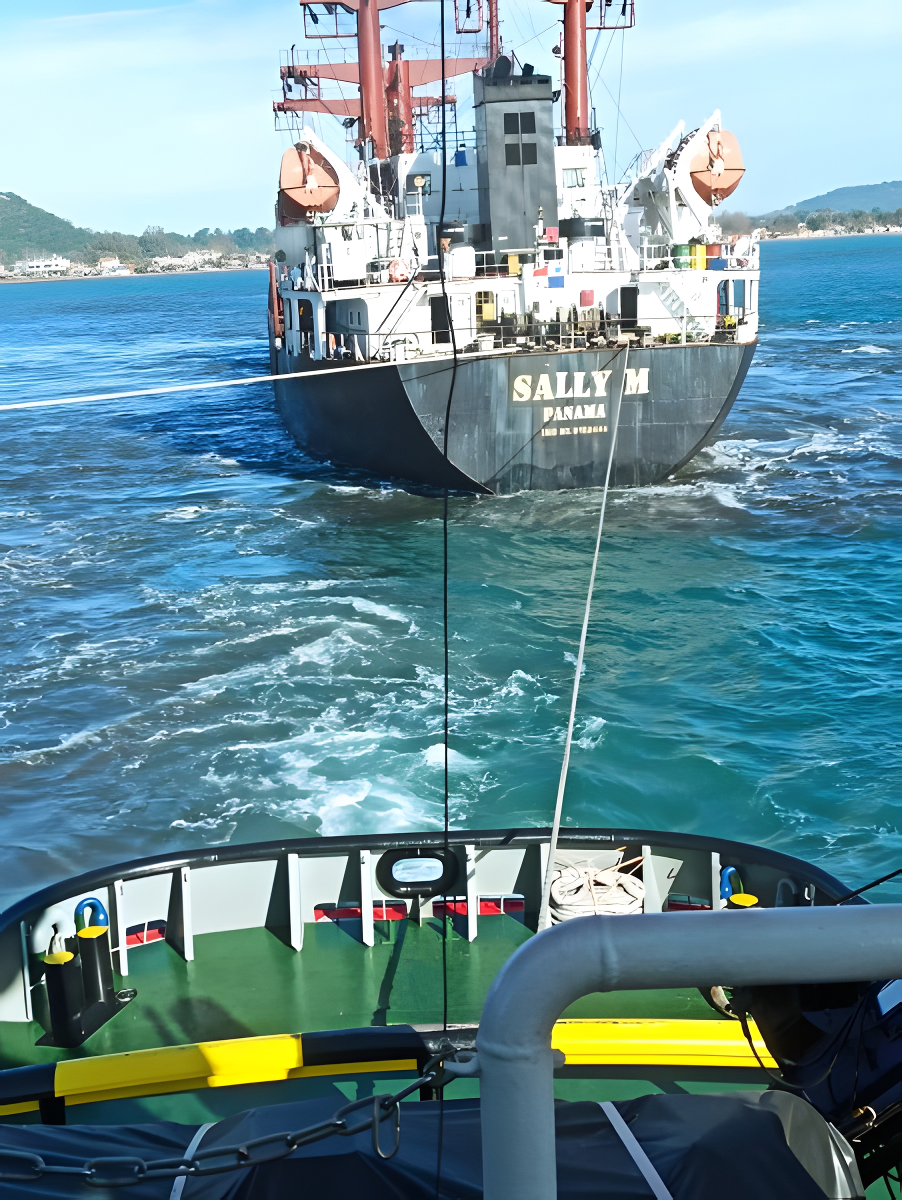 On 6 February, Tsavliris despatched their Patras-based S/T "PROTEAS "(BHP 3,200 - BP 45) arriving at Katakolo on 7 February. On the same day the vessel was refloated successfully in conjunction with the T/B "CHRISTOS XXV "(BHP 2,600 – BP 30).