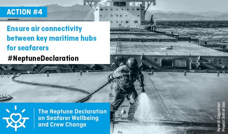 Hundreds of companies and organisations recognise that they have a shared responsibility based on their roles across the entire maritime value chain, and beyond, to ensure that the crew change crisis is resolved as soon as possible. They have signed the Neptune Declaration on Seafarer Wellbeing and Crew Change that defines four main actions to facilitate crew changes and keep global supply chains functioning: