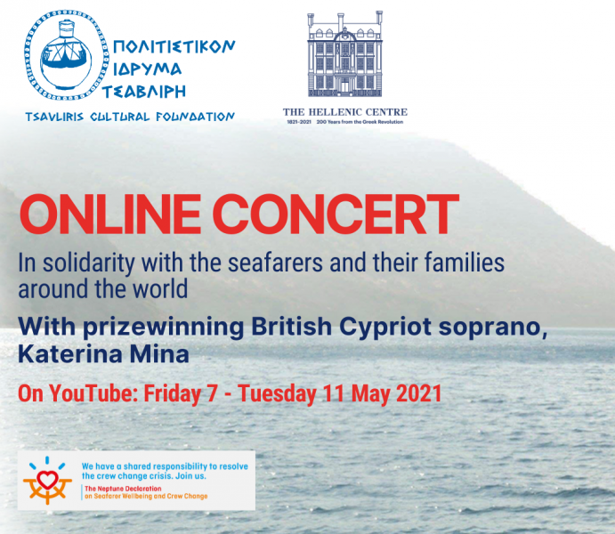The TSAVLIRIS CULTURAL FOUNDATION, in an effort to raise awareness about the tremendous impact Covid-19 has had on seafarers globally and to provide support to the crews who are on the front line of this pandemic, organises an online concert with prizewinning British Cypriot soprano, KATERINA MINA.