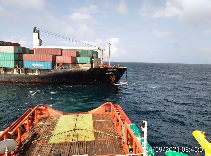 On 21 September, Tsavliris despatched the AHT "TEJA" from her salvage station at Duqm to the assistance of the casualty, which at the time was adrift in the Arabian Sea, about 320 miles East of Socotra Island.