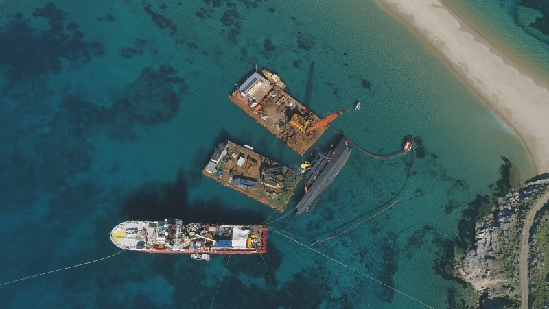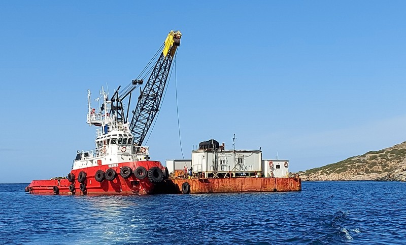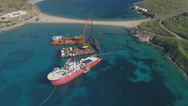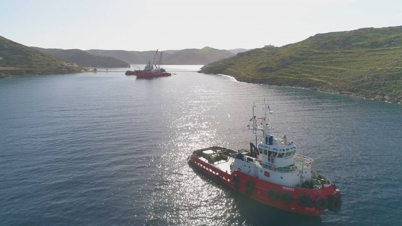 The floating cranes demobilised and were towed back to their stations by two tugs, the S/T "HERMES" and the S/T "AGONISTIS" (BHP 2,400 – BP 35) respectively. The OSV "AEGIS I" demobilised back to its base in Piraeus.
