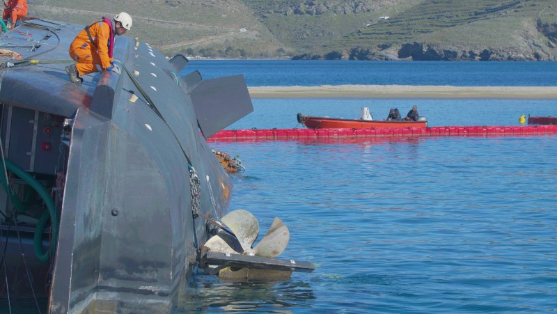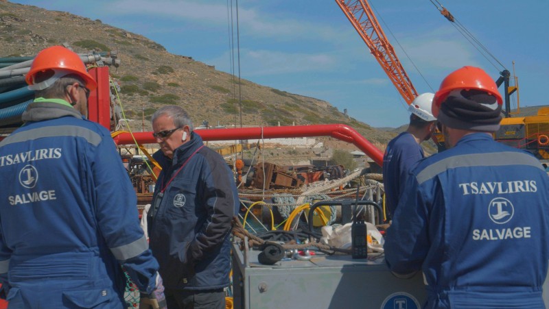 On 1 March 2023, Tsavliris Salvage Team, Antipollution Team and Divers from "Thalassa Diving" company arrived at the casualty's position and on 2 March, EPE's antipollution tug "AEGIS I" arrived, carrying various salvage equipment. Two floating cranes were arranged for the operation with the assistance of two tugs: floating crane "KOMNINOS" (110T lifting capacity) was towed from Heraklion, Crete, by the T/B "MICHALIS S" (BHP 1,000 - BP 20) and floating crane "BT1" (120T lifting capacity) was towed from Skala, Katerini, by Tsavliris' S/T "HERMES" (BHP 2,725 - BP 43), arriving at Kolones Bay, Kythnos, on 6 March and 12 March respectively.