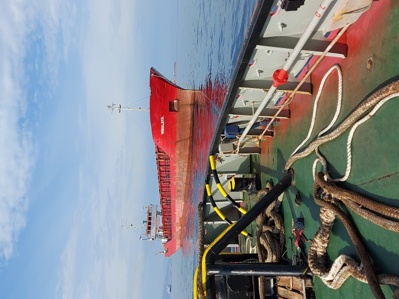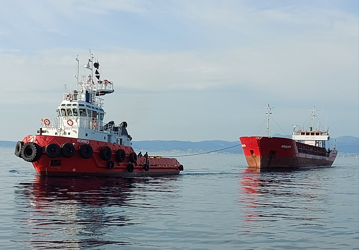 On 28 April 2023, Tsavliris despatched their T/B "HERMES" (BHP 2,725 – BP 41) from her salvage station in Patras Port, to the assistance of the casualty. Due to difficulties in heaving up the anchor, it became necessary to cut/buoy the casualty's anchor chain.