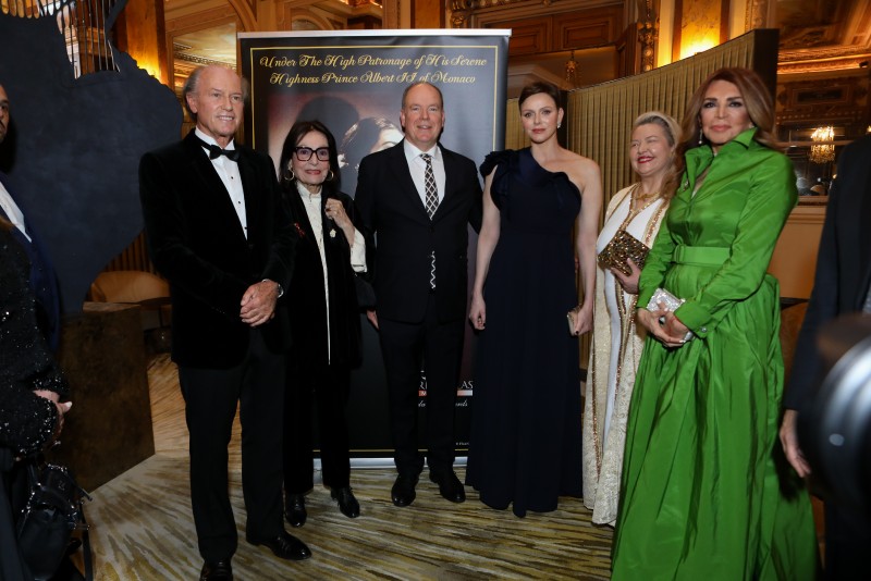 Photo (L to R): Andreas A. Tsavliris, world-renowned Greek singer Nana Mouschouri, Prince Albert II of Monaco, Princess Charlene of Monaco