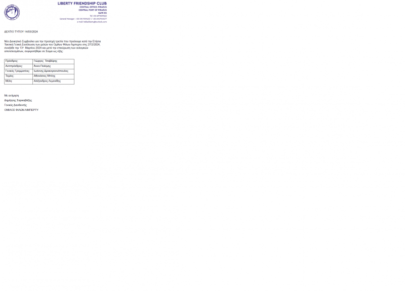 On 27 February 2024, George A.Tsavliris was elected President of the Board of Directors of the floating Maritime Museum "HELLAS LIBERTY" for the next three years.