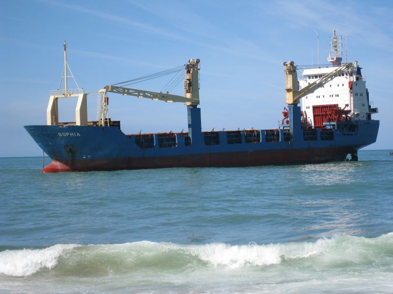 During ferocious gale force winds and swells up to 10 meters in height, on March 7th the M/V "SOPHIA" grounded 10 miles east of the Algerian port of Skikda. The grounding caused bottom damage and the "SOPHIA" is sitting hard aground on rocks in maximum water depth of 2,5 meters. Due to the substantial bottom damage, the weather and the swell exposed area, it is considered best practice for the fuel oils to remain on board the vessel. The oils are trapped in her double bottom fuel tanks and to date, no oils have escaped from her. Due to the extensive damages caused by the grounding of M/V "SOPHIA", only some 25% of the double bottom capacity could be restored by salvors as buoyancy. Furthermore the required lightering will be achieved by removing the cargo of pipes. Once the cargo is removed, the vessel can be refloated and towed to the port of Skikda where the oils will then be removed from the M/V "SOPHIA".
